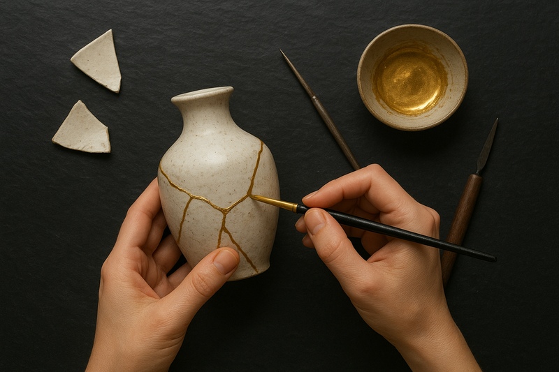 In Japan, there’s an art called kintsugi, where broken pottery is repaired with gold. The cracks don’t disappear. They’re filled and sealed, becoming the most beautiful part of the piece.